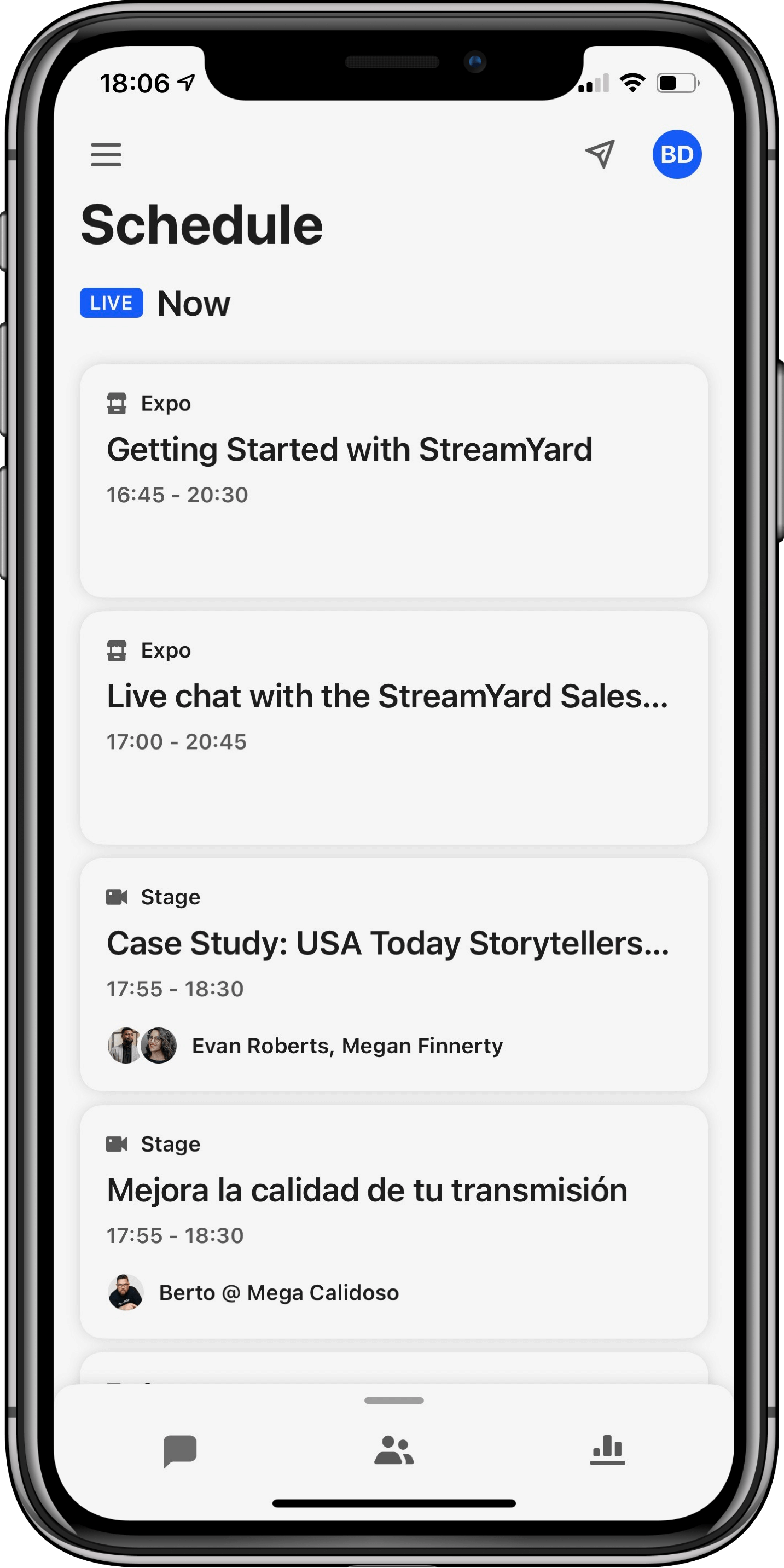 Clear differentiation of past and upcoming sessions, helping users quickly see what’s happening right now